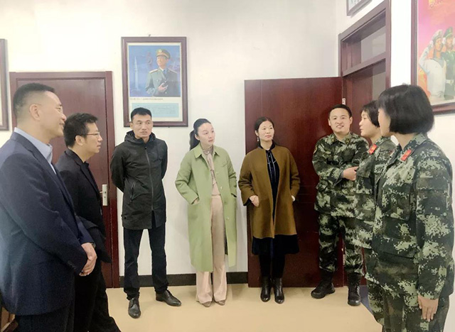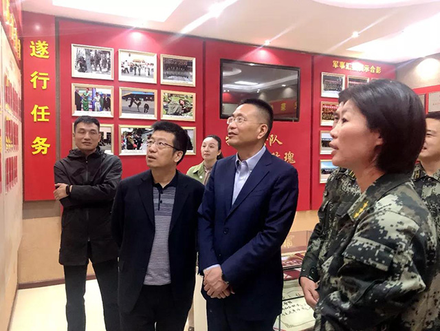 座談結束后,愛國擁軍促進會一行人等在部隊首長的帶領下,先后參觀了大隊榮譽室、器材室、官兵宿舍和訓練場,在官兵宿舍,愛國擁軍會領導特別慰問了江蘇徐州籍的特戰女兵,親切詢問了特戰女兵的生活、學習和訓練情況,金彭集團總裁劉志培現場向優秀的特戰姑娘拋出橄欖枝,歡迎她們光榮退伍后為家鄉建設發展貢獻力量。