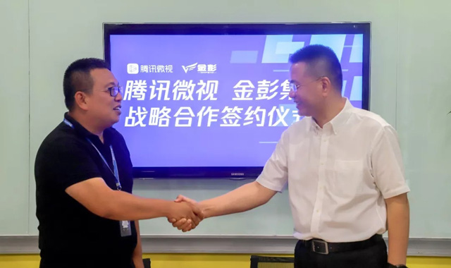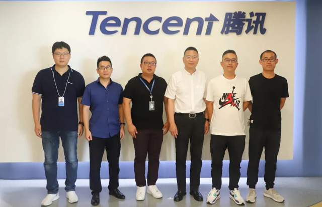 騰訊PCG微視內(nèi)容總監(jiān)耿小勇、金彭集團(tuán)總裁劉志培簽約相關(guān)領(lǐng)導(dǎo)在簽約現(xiàn)場合影留念